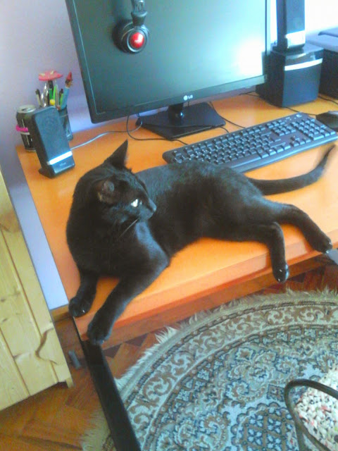 Estava eu muito linda acabadinha de limpar o pó ao escritório, o Noa decide que tem de se deitar mesmo em cima da secretária acabada de limpar, enchendo tudo de pêlos....obrigada!